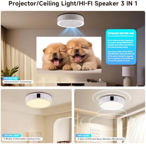 4K Projector With WiFi 5 and Bluetooth, 3 IN 1 Ceiling Light/Speaker/Projector