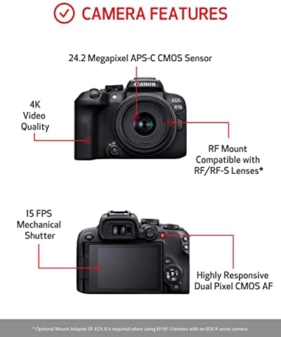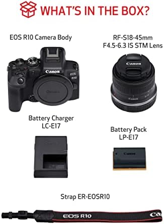 Canon EOS R10 RF-S18-45mm F4.5-6.3 is STM Lens Kit, Mirrorless Vlogging Camera