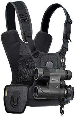 The Cotton Carrier CCS G3 Camera and Binocular Harness system is perfect for outdoor photographers and birders and is the only system on the planet that allows you to comfortably carry binoculars and a camera. The new mount fits all binoculars, carries them horizontally and allows for tripod mounting. The camera hub supports and secures one camera and lens of any size, keeping it always at the ready. The ergonomic design of the harness distributes the weight of your gear, helping to lessen the fatigue of a long day in the field. Comes complete with a comfortable and durable, one-size-fits-all adjustable Camera Harness made of Kodra Synthetic canvas with Durable Water Repellent Coating, fitted with patented super-strong Twist & Lock camera mount. The C&C machined, anodised aluminium camera hub mounts to the base of your camera and secures the camera to the harness. This system keeps your hands free, your equipment safe, and your body mobile. Ready to shoot. Right now!