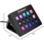 Stream Deck gives you 15 fully customizable LCD keys to control your apps and tools. Trigger actions, launch social posts, adjust audio, play sound effects, activate lights, and more. Download plugins, icon packs, thousands of royalty-free tracks plus effects, and switch out faceplates to make Stream Deck yours. Technical Specifications: Dimensions: 118 x 84 x 25 mm / 4.6 x 3.3 x 1.0 in. (without stand) Weight: 145 g without stand / 270 g with stand Keys: 15 customizable LCD keys Interface: USB 2.0 System Requirements: macOS 10.15 or newer / Windows 10 (64-bit)
