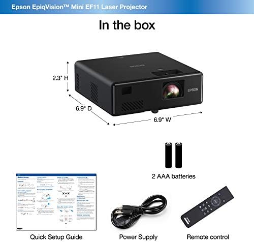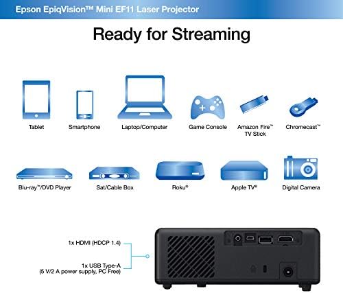 Elegant Compact Design — Designed with simplicity in mind, the Epson EpiqVision EF11 Mini Laser Projector has a clean, compact, and modern design, allowing you to take it virtually anywhere.