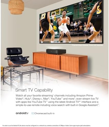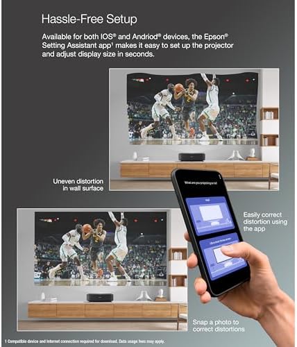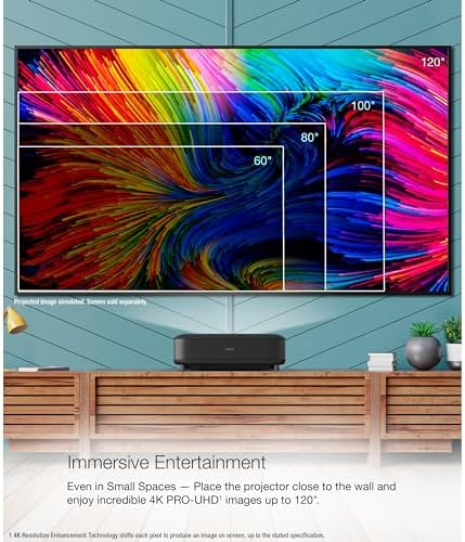 Make everyday entertainment epic with the Epson EpiqVision Ultra LS650 Smart Streaming Laser Projector. Whether watching movies and TV shows or gaming with the whole family, the Epson EpiqVision Ultra LS650 delivers an immersive experience for everyone with amazing 4K PRO-UHD (1) picture quality. The larger-than-life display size up to 120″ provides a front-row seat to all the action and the convenient ultra short throw design allows the projector to be placed close to the wall for easy viewing. Perfect for your living room, the Epson EpiqVision Ultra LS650 features advanced 3-chip 3LCD technology to produce crisp, clear and colorful images—even in brightly lit environments. And, with the Epson Setting Assistant app (2), projector setup is faster and easier than ever. 1. 4K Resolution Enhancement Technology shifts each pixel to produce an image on screen, up to the stated specification. | 2. Compatible device and Internet connection required for download. | 3. Color brightness (color light output) and white brightness (white light output) will vary depending on usage conditions. Color light output measured in accordance with IDMS 15.4; white light output measured in accordance with ISO 21118. | 4. In order to use the Android TV, the device must be configured on a network via a wireless connection of 5 Mbps or faster. Some apps require paid subscriptions. | 5. eARC supports Dolby Atmos, Dolby Digital Plus, Dolby Digital (AC-3) and DTS, and requires an eARC enabled audio device and an HDMI High-Speed Cable with Ethernet or an Ultra High-Speed HDMI Cable (HDMI 2.1a rated). | 6. Expedited shipping not available in all areas. Road Service orders must be placed and processed by 3 p.m. Eastern Time for Two-Business-Day delivery.