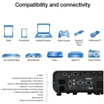 True 3-Chip 3LCD technology — displays 100% of the RGB color signal for every frame, providing outstanding color accuracy while maintaining excellent color brightness, without any distracting “rainbowing” or “color brightness” issues seen with other projection technologies
