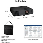 The perfect solution for the evolving workplace, the Pro EX11000 Full HD 1080p laser projector produces a bright and vibrant display designed to maximize visibility and engagement. Cultivate collaboration during Zoom meetings and video conferences with vivid, immersive images up to 300″—all while keeping the lights on. Experience amazing clarity with 4,600 lumens of color and white brightness1 plus, with the 20,000-hour laser light source2 there are no lamps to replace, ever. With Best-in-Class Color Brightness3 and a built-in 16 W speaker, the Pro EX11000 helps ensure that you won’t miss any of the important details. Offering a multitude of connectivity options, including two HDMI ports and a USB port to power popular streaming devices like Fire TV, Apple TV®, Roku, and Chromecast™4, the Pro EX11000 redefines versatility. With 3-chip 3LCD technology, experience remarkable color accuracy while maintaining color brightness. Featuring easy-to-use image adjustments, 1 – 1.6x optical zoom, auto vertical correction and more, you will be up and running in no time. Work better together with the Pro EX11000. 1. Color brightness (color light output) and white brightness (white light output) will vary depending on usage conditions. Color light output measured in accordance with IDMS 15.4; white light output measured in accordance with ISO 21118. | 2. No required maintenance for the light source for up to 20,000 hours. Approximate time until brightness decreases 50% from first usage. Measured by acceleration test assuming use of 0.04 – 0.20 mg/m3 of particulate matter. Time varies depending on usage conditions and environment. Replacement of parts other than the light source may be required in a shorter period. | 3. Brightness (Color Light Output) in brightest mode, measured by a third-party lab in accordance with IDMS 15.4. Top selling Epson 3LCD projectors versus comparable 1-chip DLP® projectors based on NPD sales data for January 2022 to December 2022. COLOR BRIGHTNESS WILL VARY BASED ON USAGE CONDITIONS. | 4. Requires wireless network connection of 5 Mbps or faster. Some apps require paid subscriptions.