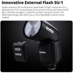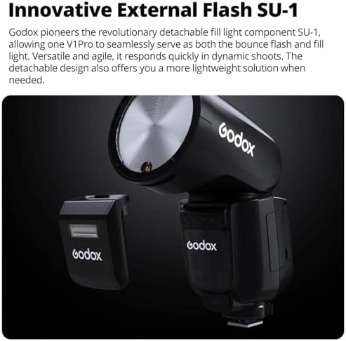 【InnovativeExternal Flash SU-1】Experience the future of flash photography with the innovative Godox SU-1. This game-changing detachable fill light component redefines versatility, as it seamlessly transforms the V1Pro into both a bounce flash and a fill light. Designed for dynamic shoots, the SU-1 responds swiftly, ensuring you never miss a moment. Plus, its detachable design provides a lightweight solution whenever you need it.