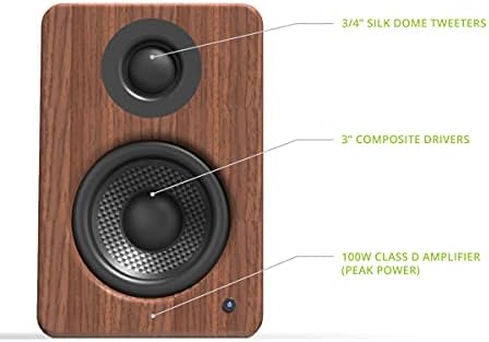 Tech Specs 3/4-inch Silk Dome Tweeters 3-inch Composite Drivers 100W Peak Power Class D Amplifier (50 Watts Total RMS) 80 Hz – 20 kHz Frequency Response Acoustic Grade MDF Cabinets
