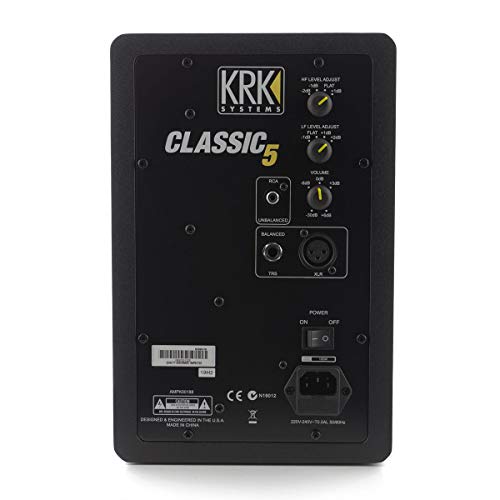 KRK Classic 5 powered studio monitors incorporate over 30 years of innovation from the world’s leading studio monitor manufacturer. Borrowing concepts from the ROKIT line—one of the most used studio monitor lines in the world, the Classic 5 defaults to a new FLAT frequency solution towards more critical listening—transpiring into more accurate mixes. With the optional +2dB KRK Bass Boost, the Classic 5 holds true to the sound that music creators around the world have loved for years. The Classic 5 monitors deliver a multitude of features geared to meet the demands of today’s competitive producers and engineers including an innovative Class A/B amplifier with a built-in automatic limiter, a 1″ soft dome tweeter and 5″ glass-Aramid composite woofer, a waveguide designed to ensure detailed imaging in the listening position, a front-slotted bass port to reduce boundary coupling and allow flexible positioning in the room, and multiple input connections to ensure the Classic 5 will easily integrate into any system configuration. Taking cues from one of the most used studio monitors in the world, the KRK Classic 5 is a valuable compact solution towards accurate mixes and productions.