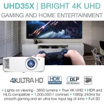 ULTRA-BRIGHT: Enjoy 3,600 lumens of brightness in your home theater room, family room, gaming room – or even outdoors for backyard movie nights