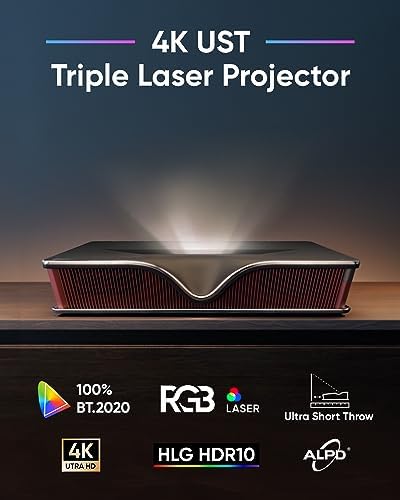 【Ultimate RGB Triple Laser TV】 Powered with a cutting edge triple laser light sources, the P2000UST-RGB boasts genuine 4K UHD resolution, 2500 ANSI Lumens brightness, complete BT.2020 coverage, and seamless compatibility with HDR10/HLG, elevating the allure of visual colors to unprecedented levels.