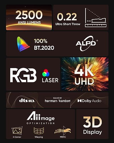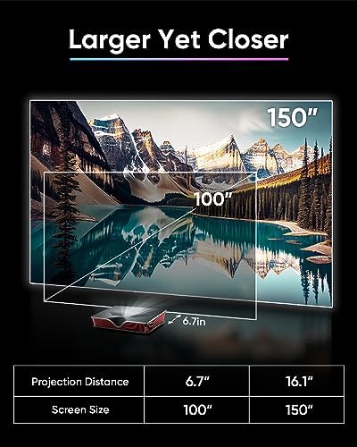 【Shorter Distance and Larger Screen】 Thanks to its ultra short throw projection ratio of 0.22:1, the P2000UST-RGB lets you revel in a vast 100″ screen from a minimal 6.7″ distance from the wall. Encounter mesmerizing visuals on screens extending up to 150 inches, greatly elevating your viewing experience through its outstanding performance.