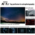 The PENTAX K-1 Mark II: the new standard of the 35mm full-frame K series Rich colors and subtle shades, and a beautiful bokeh and a well-defined sense of depth. When the photographer’s inspiration is truly reflected in all these elements, photographs will become more than mere records – they will evolve into truly impressive works of art. The PENTAX K-1 Mark II has been created as the flagship model that will fulfill this goal. It features a new, advanced image-processing system to deliver the beautiful image quality which all photographers demand. It produces images that are rich in color and gradation, high in resolution, and superb in bokeh rendition. File format RAW (PEF/DNG), JPEG (Exif 2.3), DCF2.0 compliant Video File Format MPEG-4 AVC/H.264(MOV)