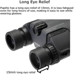 Diopter adjustment: if you have differing prescriptions in each Eye, you can adjust the left and right lenses independently, whilst the long eye-relief allows you to use the binoculars comfortably, even when wearing glasses