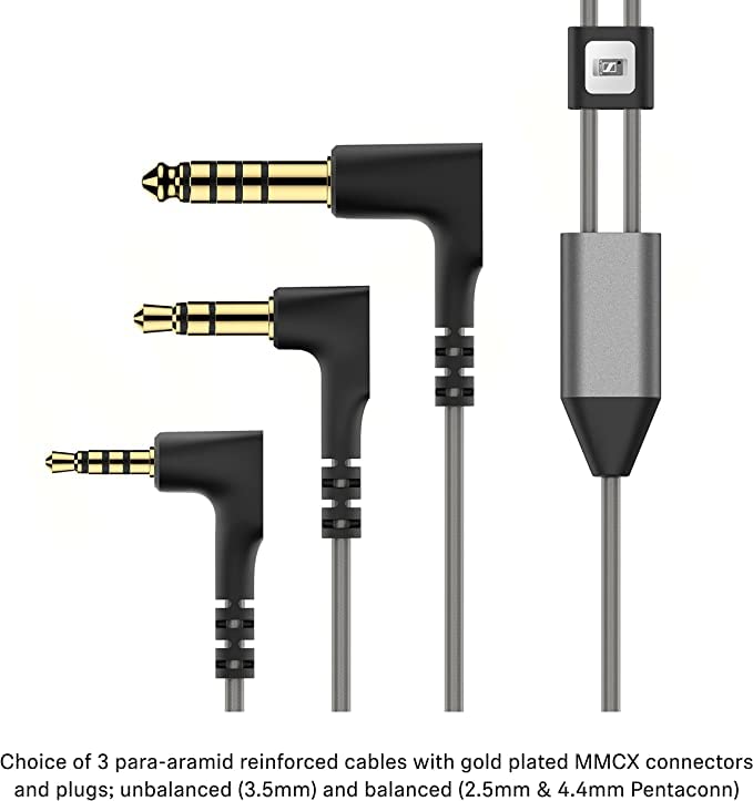 Selection of silicone and memory foam ear adaptors in 3 sizes (S/M/L) and adjustable ear hooks to ensure an optimal fit and high noise isolation.Product includes: 3 connecting cables with MMCX connectors; single ended 3.5mm and balanced 2.5mm & 4.4mm, silicone & memory foam sets (S, M, L), carry case, cleaning tool and user manual.2 year warranty