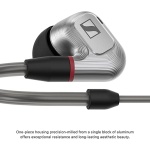 IE 900 – The precision-manufactured aluminum housing of the IE 900 faithfully protects the dynamic TrueResponse transducers at the heart of Sennheiser’s innovative X3R technology. Experience the peak of German audio engineering and manufacturing with earphones that deliver only the purest, most natural sound. Features New benchmark in portable audio Ultimate precision & craftsmanship Made in Germany X3R technology: TrueResponse transducer combined with three Helmholtz resonator chambers and acoustic vortex Precision-milled and anodized aluminum housing Hand-assembled at Sennheiser´s headquarters Gold-plated Fidelity (+) MMCX connectors for improved stability Choice of para-aramid reinforced cables (2.5 mm, 3.5 mm, 4.4 mm) Adjustable ear hooks and choice of ear adapters including memory foam Frequency response: 5 Hz – 48,000 Hz THD: 0.05% (1 kHz, 94 dB) Impedance: 16 ohms