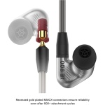 Equipped with para aramid reinforced cables with gold plated MMCX connectors which possesses a special recessed and robust design to ensure reliability even after over 500 attachment cycles