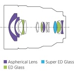 Premium Optics; 4 aspherical, 1 Super ED, 3 ED glass elements