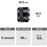 New optical design for excellent peripheral sharpness and contrast, Built-in image stabilization. Filter diameter is 49mm