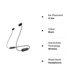 Sony WI-C100 Wireless Earphones with 25 Hrs Battery, Quick Charge, DSEE-Upscale, Splash Proof (IPX4), 360RA, Clear Bass, Fast Pair, in-Ear Bluetooth Headset with mic (Black)