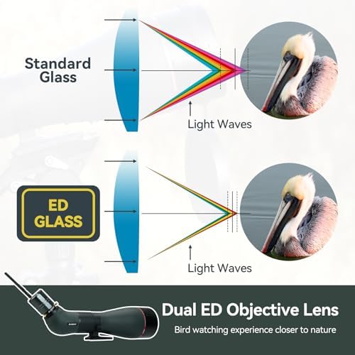 100mm large-aperture; improved light collection capabilities; provides wide field of view and support for long-distance observation; allow the spotting scope to display a bright field of view