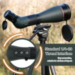 Standard thread interface; use the universal standard ¼-20 tapped hole; you may mount this spotter scope on different size tripods; makes it easier to fit different usages