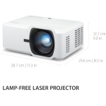 With the ViewSonic® LS740HD laser projector, you can light up every room with brilliant presentations and razor-sharp resolution. Featuring the latest laser phosphor technology, the LS740HD projector delivers 5,000 ANSI lumens of brightness to ensure crisp images even in rooms with ambient lighting. Enjoy a maintenance-free projection experience without having to deal with complicated lamp replacements. This eco-friendly projection solution features a compact design for easier transportation. Experience screen sizes up to 300” in 1080p Full HD resolution for show-stopping images designed to fill up boardrooms, lecture halls, auditoriums and other public spaces. The LS740HD laser projector comes loaded with features like 1.3x optical zoom, H/V keystone, 4 corner adjustment, 360° projection and portrait mode for easy setup and versatile applications.