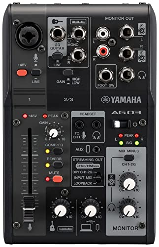 A 3-channel live streaming mixer with USB audio interface. the original AG03 quickly established itself as a staple amongst live streamers looking to configure a simple yet comprehensive setup without compromising on sound quality.