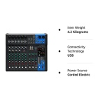 12-Channel Mixing Console: Max. 6 Mic / 12 Line Inputs (6 mono + 3 stereo) / 1 Stereo Bus / 1 AUX (incl. FX)